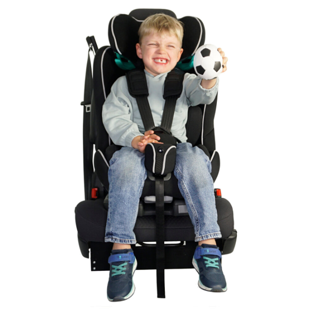 - Fácil manejo: El bloqueo del limitador de altura del reposacabezas indica cuándo es necesario cambiar del cinturón de seguridad al cinturón de posicionamiento, eliminando errores de manejo (cuando se utiliza el cinturón de 3 puntos propio del vehículo)
