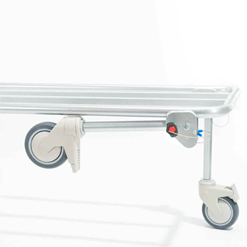 La base para silla de baño Lisa puede adaptarse a diversos sistemas de sillas de baño y ofrece soportes de anchura y altura ajustables sin escalonamientos para un posicionamiento flexible. Está equipada con cuatro ruedas dobles y fabricada íntegramente en acero inoxidable. También está disponible una versión que ahorra espacio con patas plegables.