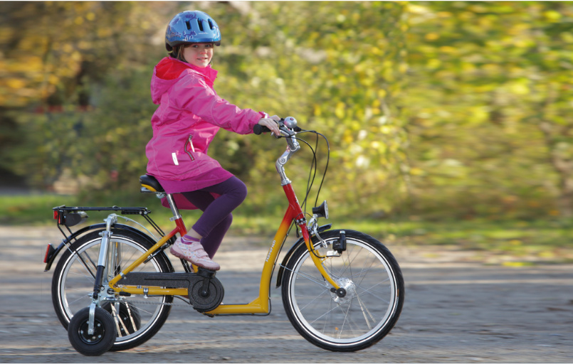La bicicleta terapéutica de tamaño I se ha desarrollado especialmente para niños de 5 a 8 años. Ofrece un amplio equipamiento para la seguridad, el confort y la diversión.