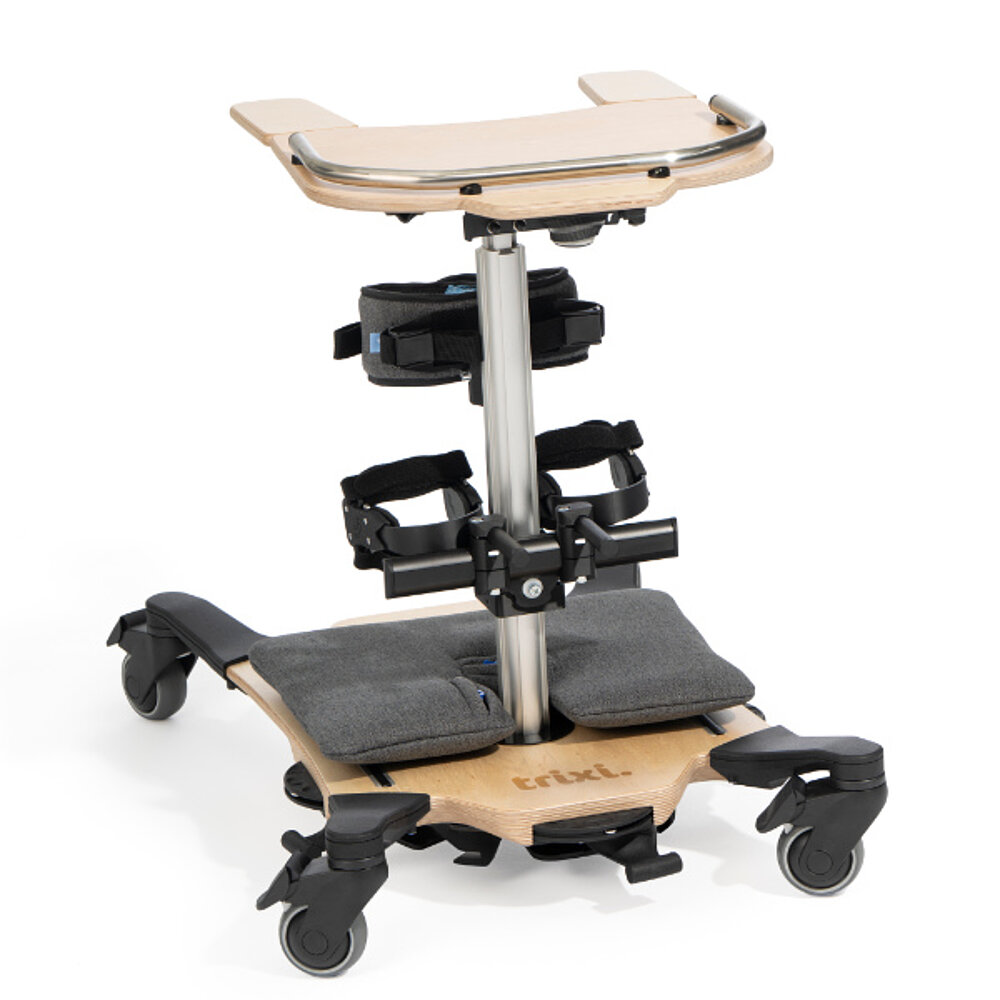 El trixi. Standing Trainer ayuda a niños y jóvenes en el entrenamiento activo de la bipedestación y el fomento del equilibrio, la postura y la estabilidad del tronco. Gracias a su función dinámica, el bipedestador se adapta a los movimientos del niño y permite un entrenamiento especialmente natural. Numerosas opciones de ajuste y accesorios opcionales garantizan una personalización individual. El bipedestador trixi. ofrece un apoyo cómodo y terapéuticamente eficaz en la vida diaria y en la terapia.