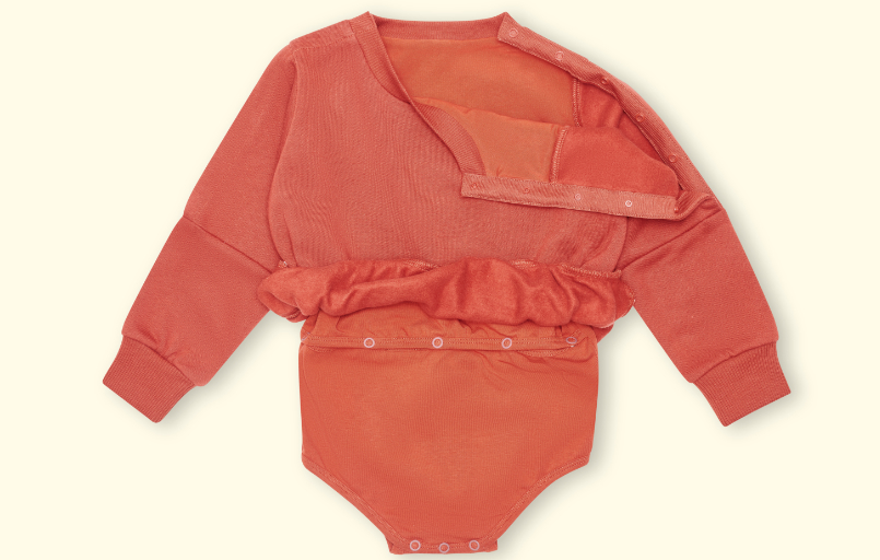 El body bicapa para sondas, confeccionado en un agradable tejido transpirable, mantiene caliente al niño y facilita el cuidado de sondas venosas, estomas o tubos. Ideal para niños con prótesis craneales y para los que tienen sonda de alimentación, sonda venosa o vesical o estoma. Perfecto para la hospitalización, después de operaciones o cuando se necesitan infusiones.