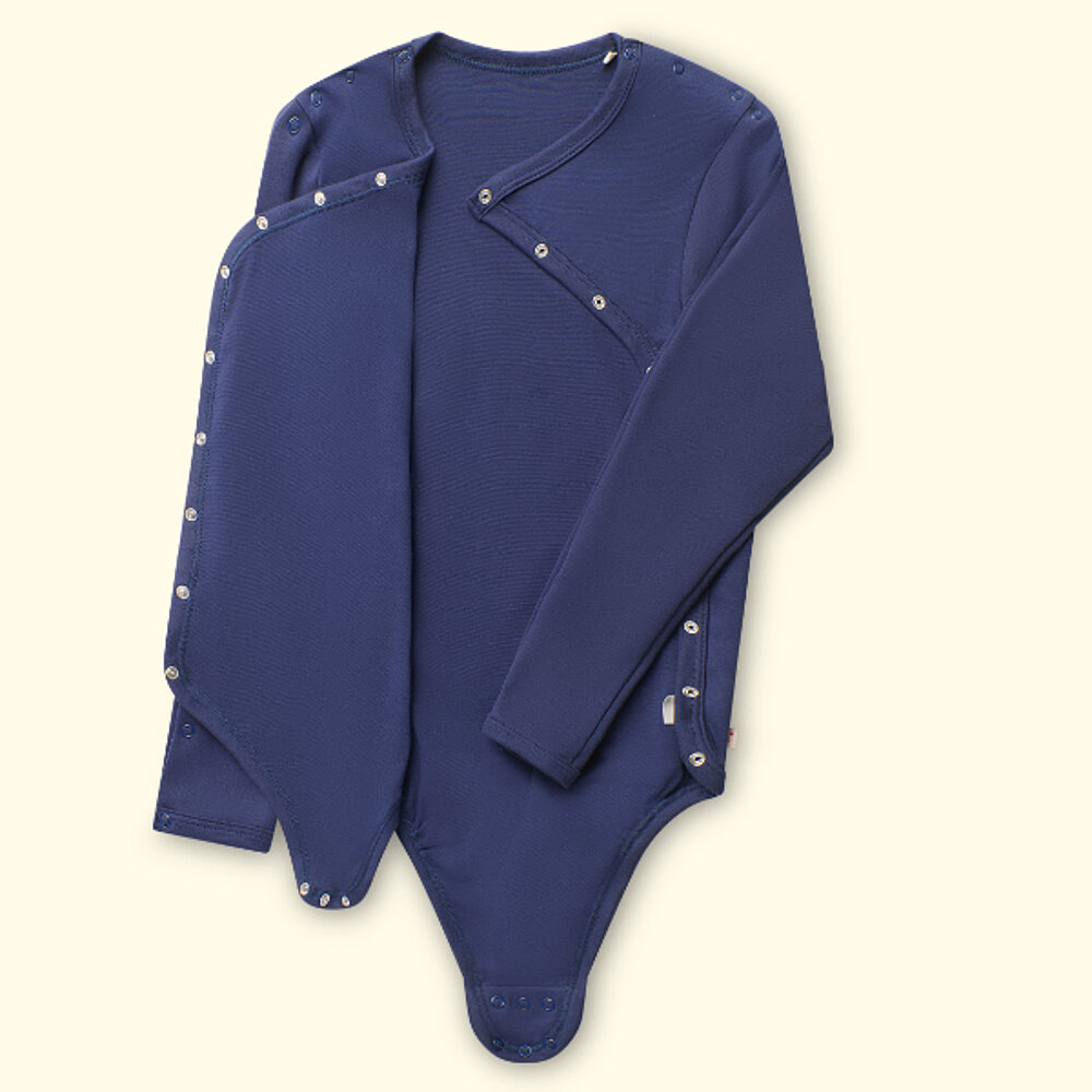El body adaptable para sonda Large Charlotte 2.0 facilita el cuidado de todos los accesos médicos y garantiza la máxima comodidad. Con su corte optimizado, ajuste mejorado y función de crecimiento, ofrece una solución cómoda para bebés prematuros, niños con sondas de alimentación, catéteres o escayolas y después de operaciones. El body está confeccionado en suave algodón orgánico, es fácil de poner y quitar y está disponible en los colores petróleo y azul marino. Fabricado limpiamente en Europa, ofrece alta calidad y durabilidad.
