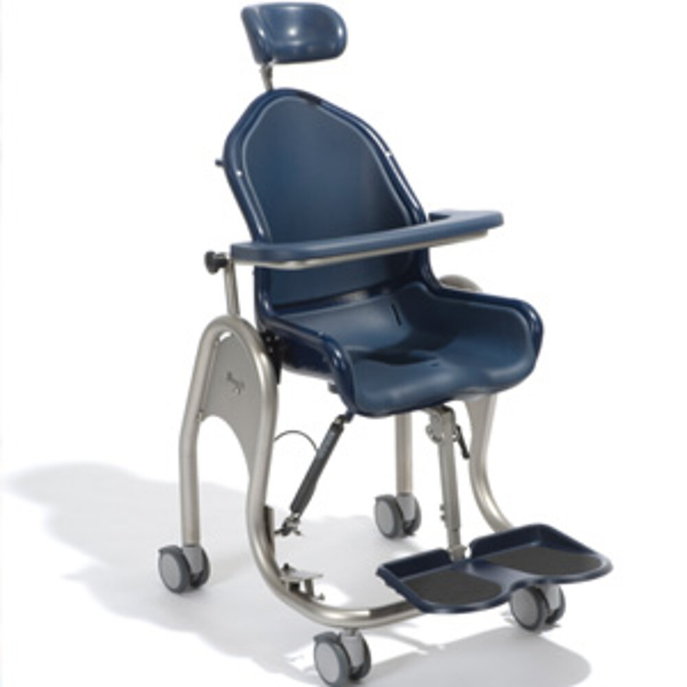 La cómoda silla de ducha y cómoda tiene una carcasa de asiento anatómica que proporciona apoyo en la zona pélvica y estabiliza la parte superior del cuerpo. La robusta base es de acero inoxidable para una mayor durabilidad. La silla ofrece múltiples posibilidades de ajuste, ya que la carcasa del asiento puede regularse de forma continua entre (-)5° y 30° mediante un pedal. Los cojines de asiento proporcionan un confort adicional y evitan puntos de presión en el cuerpo. Opcionalmente, el asiento puede tapizarse. El reposapiés es abatible para facilitar la entrada y la salida. Una mesa con reposabrazos acolchados y giratorios proporciona más comodidad y estabilidad. El reposacabezas puede ajustarse en altura y ángulo para satisfacer las necesidades individuales. La silla también dispone de inodoro y puede utilizarse como silla cómoda independientemente del inodoro. En las tallas 2-4 hay disponible una abertura higiénica mayor.