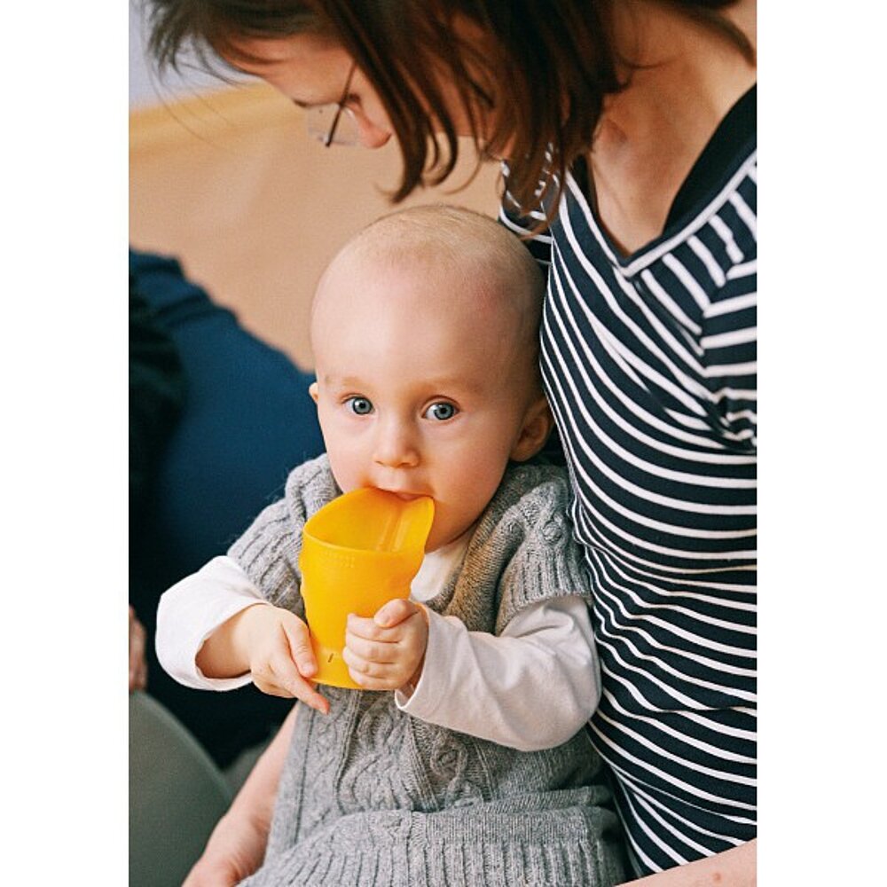 Meist geht was daneben, aber es klappt viel besser als mit einem „normalen“ Kinderbecher (zb IKEA oder ähnlich.) Den Camo Cup kann man gut anreichen und gut schauen, wie viel Getränk aus dem Becher im den Mund läuft. Würden wir uns immer wieder anschaffen.