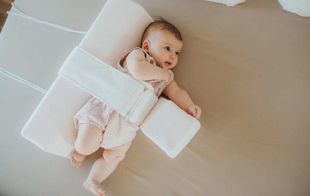 Mientras que los rollos de toalla para la estabilización lateral sólo se recomiendan en las primeras doce semanas de vida, un cojín de posicionamiento probado médicamente ofrece una seguridad y eficacia demostradas incluso después. El innovador sistema combina una terapia de posicionamiento específica con un alto nivel de protección.