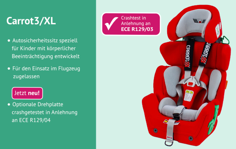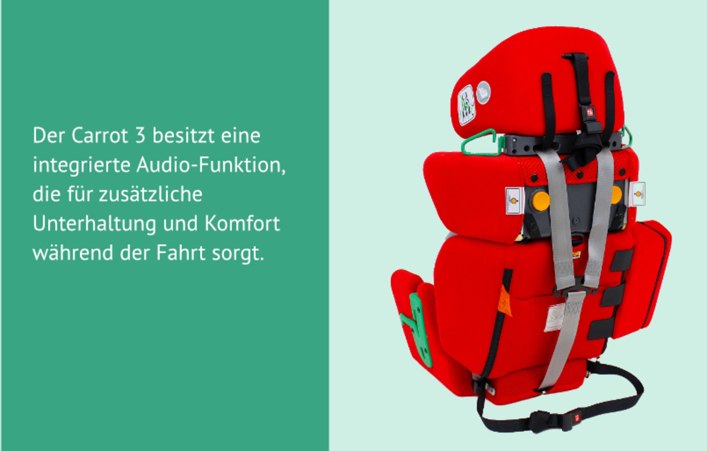 La silla de seguridad para automóvil Carrot 3 es una silla ligera y adaptable que se ha desarrollado especialmente para niños y jóvenes con necesidades especiales a partir de los dos años. Además de su aspecto deportivo, Carrot 3 ofrece un alto nivel de confort.