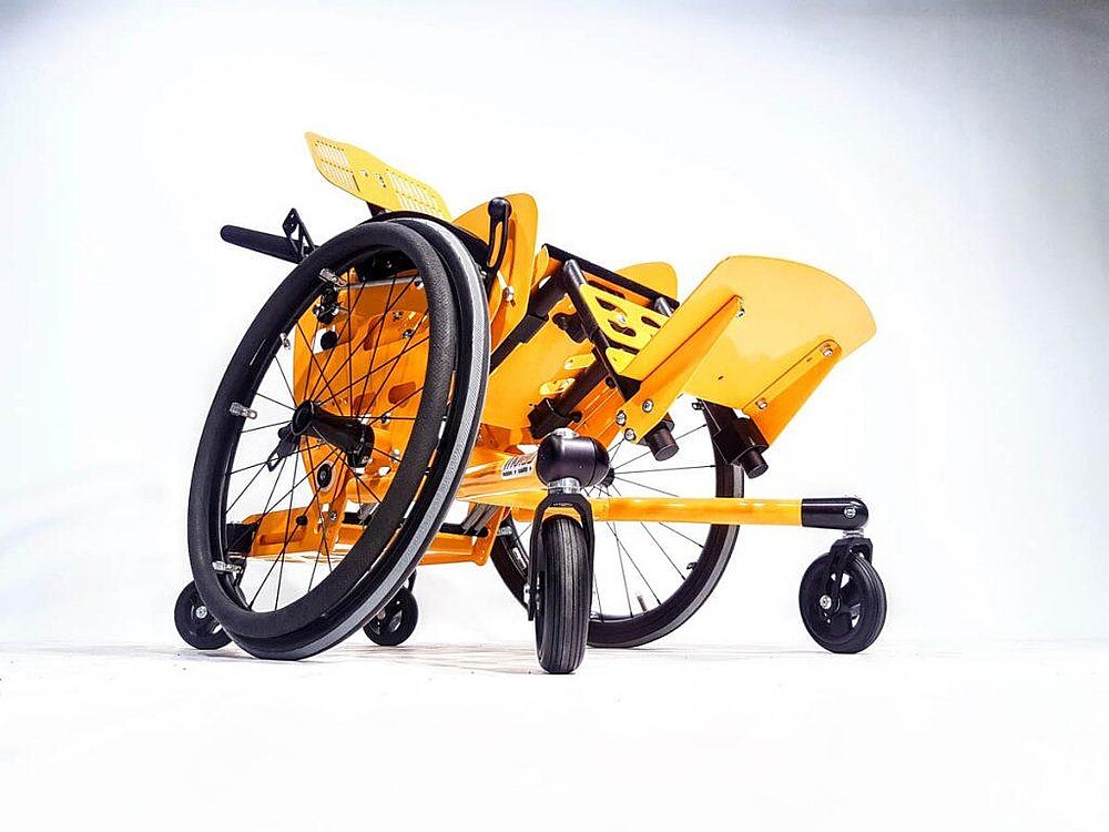 CHILLIE es una silla de ruedas adaptable inclinable con una unidad de asiento giratoria para niños y jóvenes activos.