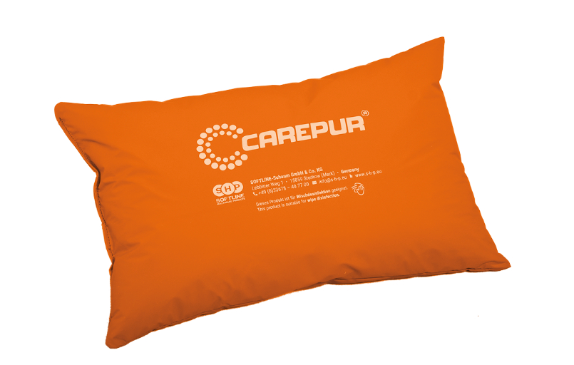 El cojín universal CAREPUR es rectangular y versátil para posicionar y apoyar la cabeza, el torso o las extremidades. En posición supina, se utiliza para apoyar y suavizar las extremidades, especialmente para el posicionamiento libre del talón. También puede sostener la cabeza, apoyar la espalda en posición lateral y aliviar la presión en la zona del antebrazo y el codo hemiparéticos en posición sentada.