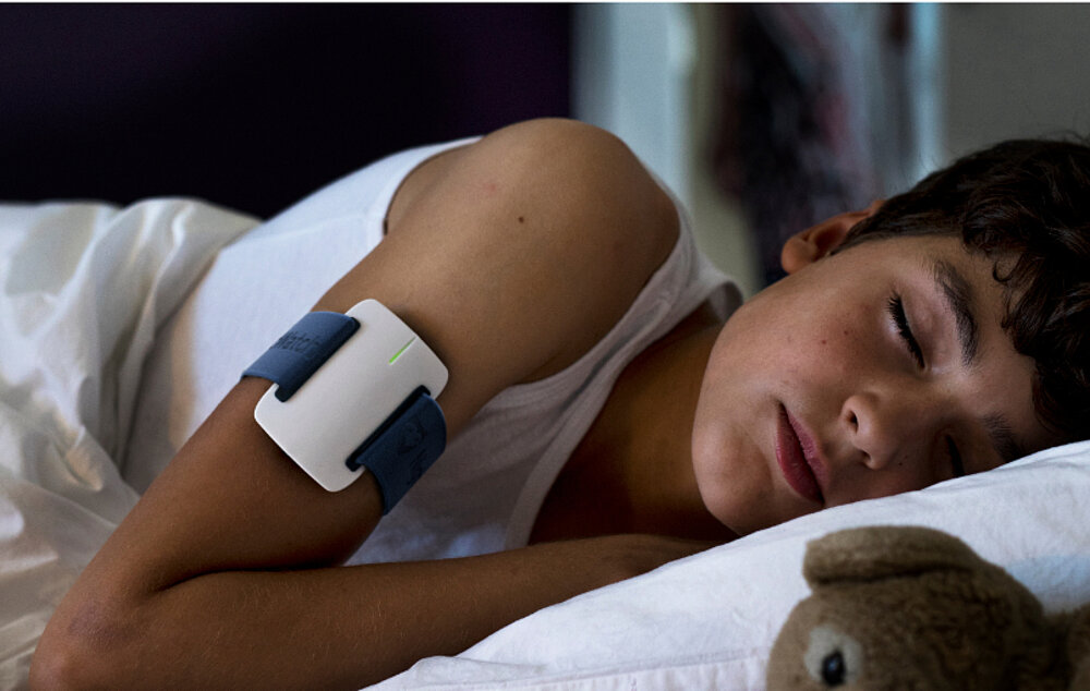 El sensor NightWatch es cómodo de llevar y registra continuamente parámetros fisiológicos como la frecuencia cardiaca y los patrones de movimiento. Basándose en algoritmos genéricos, estos datos se analizan en tiempo real para identificar patrones característicos de crisis epilépticas y emitir una alarma a tiempo.