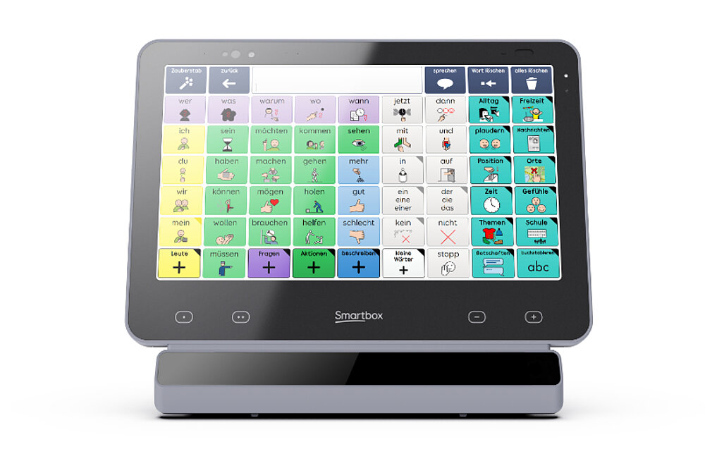 Con el ordenador de voz Grid Pad 13, obtendrá una ayuda a la comunicación excepcionalmente potente con una pantalla de 13 pulgadas brillante a la luz del día y sin deslumbramientos, botones inteligentes programables, una gran segunda pantalla multicolor de 6,5 pulgadas en la parte posterior, control de entorno integrado y altavoces de alta calidad que pueden controlarse por separado para la parte delantera y trasera. El ordenador de voz Grid Pad 13 está disponible con y sin control ocular. Alternativamente, el Grid Pad 13 puede controlarse mediante escáner, HeadMouse y táctil. El dispositivo contiene el software de comunicación más utilizado del mundo, Grid 3, adecuado para todas las edades y niveles de habilidad. Grid 3 contiene numerosos contenidos ya preparados para la comunicación de texto y símbolos. El Grid Pad 13 está disponible con el control ocular Lumin-i o Vida. Los dos excelentes controles oculares pueden utilizarse tanto en interiores como en exteriores y pueden controlarse con uno o ambos ojos.