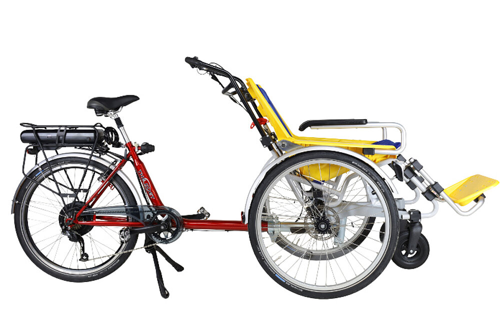 Esta solución ofrece versatilidad en muchas situaciones cotidianas. ¿Relajarse juntos en una terraza, hacer senderismo o montar en bicicleta? Gracias al diseño de esta silla de ruedas, el pedaleo y la dirección son fáciles y suaves. La silla está diseñada para adultos, pero también la pueden utilizar niños. Los cojines laterales y de respaldo opcionales permiten ajustar la anchura y la profundidad del asiento. La Duet está pensada principalmente para adultos, pero si busca una silla de ruedas que también sirva para transportar niños, también es posible gracias a un adaptador especial.