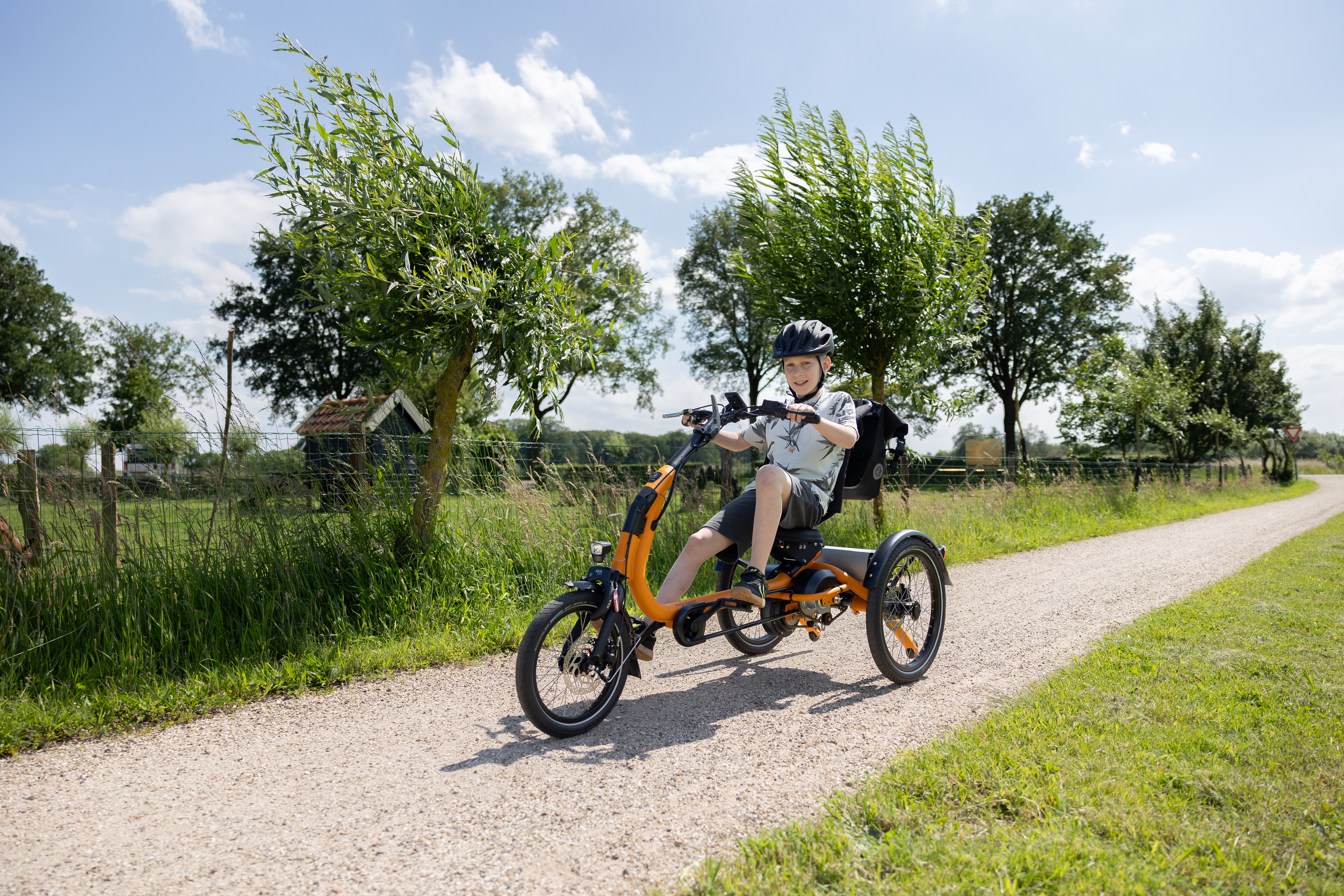 El Easy Rider Compact Small es un cómodo triciclo especialmente diseñado para niños que necesitan estabilidad extra. Con su entrada, asiento y respaldo bajos, ofrece más apoyo que una bicicleta convencional. El movimiento de pedaleo hacia delante confiere a la bicicleta un carácter deportivo. Los indicadores de dirección, los reposabrazos, la fijación para los pies y la asistencia eléctrica al pedaleo están disponibles como opciones. Con la función Smart E-Bike, la aplicación vanRaam permite configurar varios programas de asistencia. Por motivos de seguridad, la velocidad máxima está limitada a 15 km/h.
