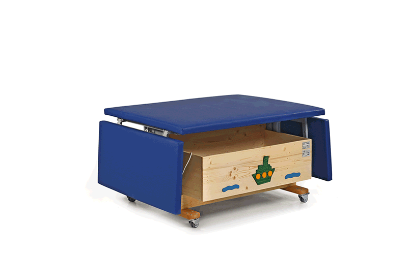 Diseñada con experiencia en el sector REHA, Felix a es una camilla multifuncional para terapia y cuidado infantil.