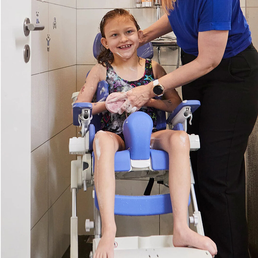 - Asiento + bastidor alto-bajo, tamaño 3 - anchura total 580 mm, altura 975-1270 mm, longitud con reposapiernas 1200 mm, radio de giro 955 mm, altura del asa de empuje 990-1350 mm, longitud total 805 mm, peso 18,1 kg, inclinación del asiento -5° a 20°, altura del asiento 530-740 mm