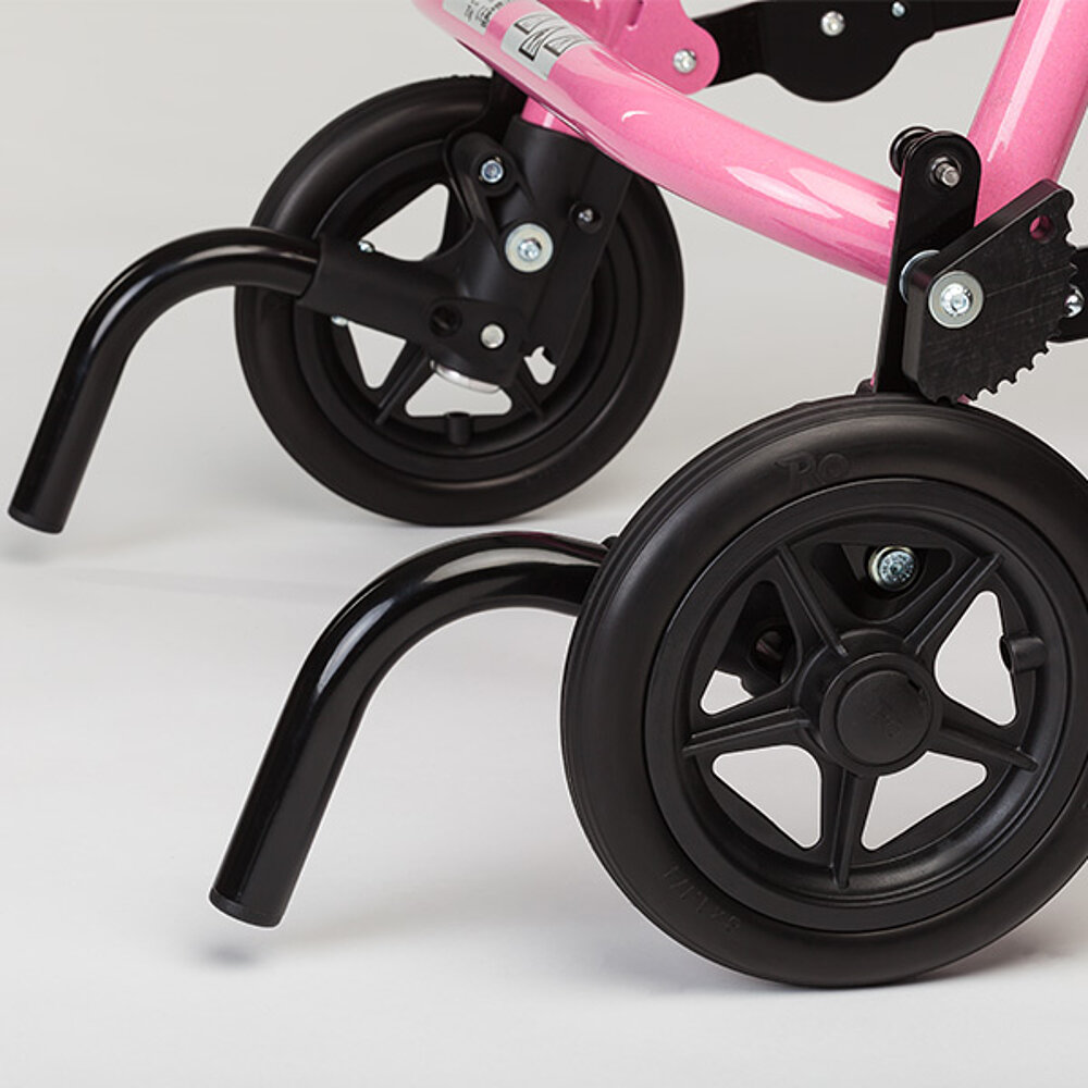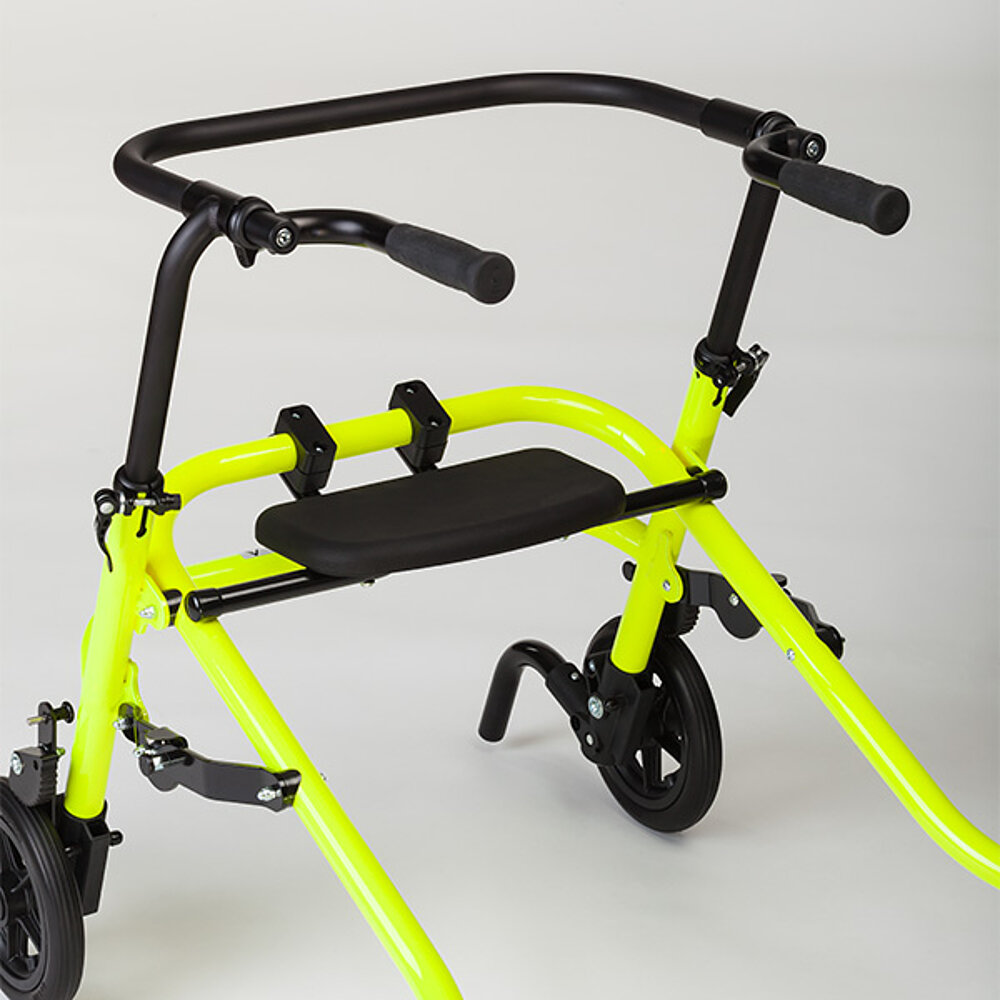 Sehr stabiler Walker, gut für draußen geeignet. Mein Kind hat in Verbindung mit einem Gurt an der dynamischen Hüftpelotte schnell das selbständige lenken drauf gehabt und Untergründe wie Schotter und Wiesen sind damit auch zu bewältigen. Einziger Nachteil: Er ist sperrig und lässt sich nicht eben schnell kompakt zusammen klappen. Aber das ist vermutlich der Preis für die tolle Stabilität.