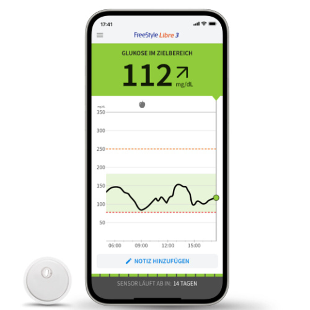 El sensor FreeStyle Libre 3 es el sensor más pequeño y plano que puede llevar en su cuerpo. A pesar de su tamaño compacto, es discreto y no interfiere en su vida diaria. El sensor le proporciona actualizaciones de glucosa minuto a minuto que le ayudan a reducir eficazmente la hipoglucemia. Gracias a su alta precisión de medición, puede confiar en unos valores de glucosa exactos. La monitorización en tiempo real le permite ver sus niveles de glucosa actuales y las tendencias en su smartphone en cualquier momento y lugar. Esto le permite realizar un seguimiento cómodo y continuo. La conexión a su smartphone le ofrece flexibilidad y movilidad. Tienes la libertad de vigilar tus niveles de glucosa en cualquier momento y lugar. El sensor es práctico y fácil de usar. Puede medir fácilmente sus niveles de glucosa y obtener información precisa y fiable. El sensor FreeStyle Libre 3 utiliza tecnología avanzada para proporcionarle una medición de glucosa de alta calidad. Es un apoyo fiable en el control de la diabetes.