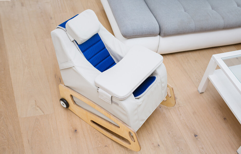 La Gravity Chair es un sistema de apoyo gravitatorio personalizado. Parece un sillón normal, pero ofrece un apoyo único. El material de espuma se adapta perfectamente al cuerpo y garantiza una posición sentada estable con un centro de gravedad bajo. El apoyo cercano al cuerpo y los reposabrazos altos aumentan aún más la estabilidad. La posición elevada de los brazos permite respirar mejor, lo que puede aumentar el contenido de oxígeno en la sangre.