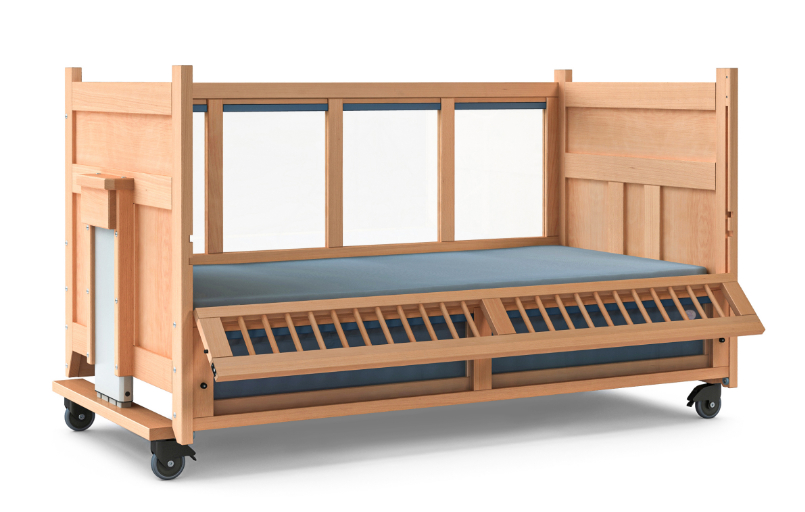 de 68 cm con un elemento abatible adicional en la parte delantera, 60 cm de altura y acceso bajo (55-105 cm del borde superior del colchón). La JEREMIA Vario puede ajustarse a la altura de trabajo deseada por los padres, cuidadores o terapeutas con sus dos motores de elevación en el extremo de los pies y la cabeza. Los complementos posibles son Trendelenburg/anti-Trendelenburg así como el ajuste eléctrico de la sección de la cabeza y de los pies, que apoyan la terapia y el bienestar de su hijo. Ya sea tapizado, guía de tubo de cable, varillas o cristal acrílico, la Jeremia Vario ofrece todas las opciones imaginables.