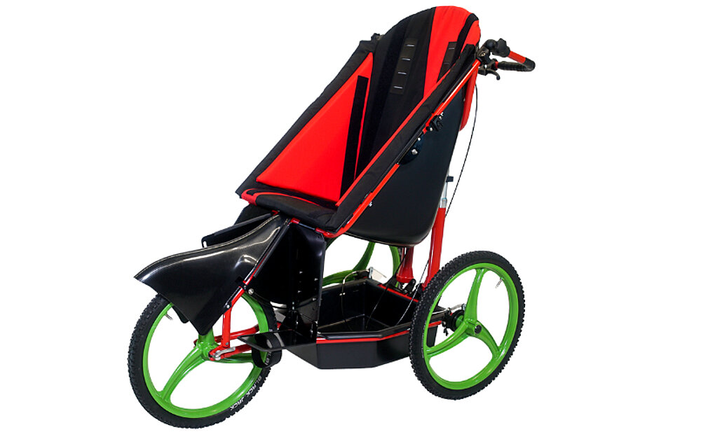 La Kangoo Vario se adapta con flexibilidad y ofrece la posibilidad de convertir la silla de rehabilitación todoterreno con suspensión total y ruedas de radios de 20" en un remolque para bicicletas. Esto la hace especialmente adecuada para familias activas que desean explorar juntos la naturaleza. Con las ruedas orientables opcionales de 10", también es ideal para actividades y paseos por la ciudad. También se puede guardar en un maletero pequeño con unos sencillos pasos. Los reposapiés telescópicos y de ángulo ajustable sin escalonamientos la convierten en una silla de paseo muy popular, especialmente para familias con niños espásticos. Con la Vario se pueden realizar fácilmente personalizaciones y soluciones especiales.