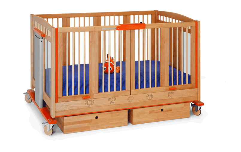 Las puertas correderas plegables de cuatro hojas y las barandillas laterales ajustables eléctricamente opcionales le ofrecen un alto grado de flexibilidad y comodidad. Le permiten acostar a su hijo más fácilmente o adaptar la cama con fines terapéuticos. Las opciones flexibles de ajuste de la altura y la inclinación le permiten satisfacer de forma óptima las necesidades de su hijo y los requisitos de la terapia. Puede personalizar la cama de cuidados Knut para crear un entorno óptimo de cuidados y terapia.