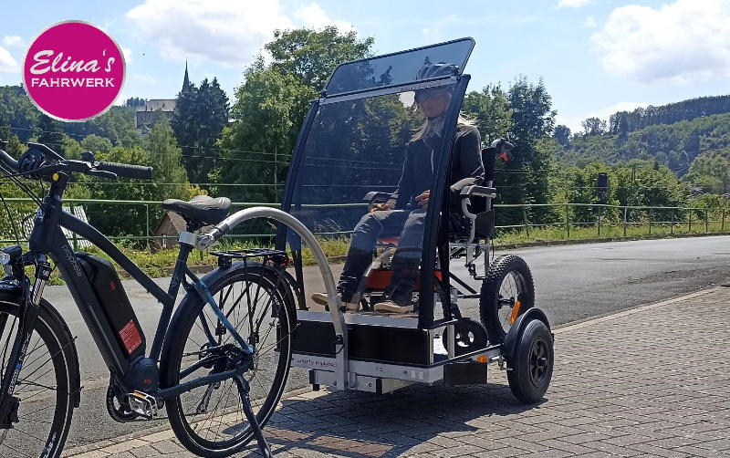 Este remolque para bicicletas en silla de ruedas, extremadamente estable y fabricado en aluminio ligero, es perfecto para niños, adolescentes y adultos: ¡tu propia silla de ruedas siempre contigo! Con su construcción de plataforma baja hecha a mano en Alemania, el remolque es un juego de niños para enganchar, cargar y asegurar. Gracias a la robusta suspensión neumática, ofrece excelentes características de conducción y máxima seguridad. Disponible en ocho tamaños y nueve variantes de color, está equipado con sistemas de cinturones para sujetar la silla de ruedas, así como con un asidero, un parabrisas y una capota opcionales.