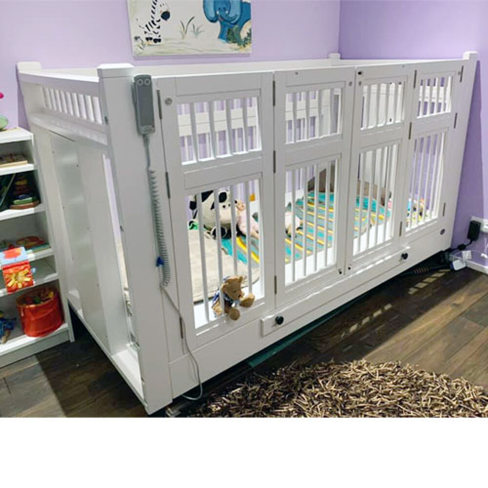 Una cama que ofrece un entorno seguro con diferentes alturas de armazón y favorece la movilidad de su hijo. En la versión de "acceso bajo" con sólo 20 cm de borde superior del colchón y 32 cm en la versión estándar, esta cama permite a su hijo la máxima independencia y la seguridad necesaria durante el sueño. La altura de terapia y cuidados varía entre 90 cm y 102 cm según el modelo. Ya sean barrotes o cristal acrílico, ya sean aplicaciones de color, natural puro o completamente lacado, no hay límites para su imaginación. El ajuste eléctrico de la sección de la cabeza y los pies ofrece opciones de posicionamiento adicionales. Esta opción sólo puede combinarse con ruedas con freno para "acceso bajo".