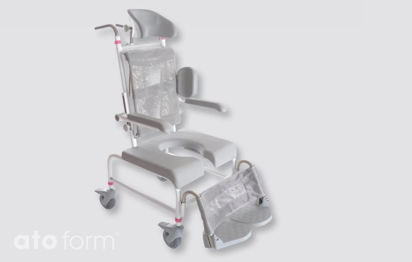 La silla de ducha e inodoro de la serie M2-Mini es una ayuda para el área sanitaria, especialmente para los pacientes más pequeños.