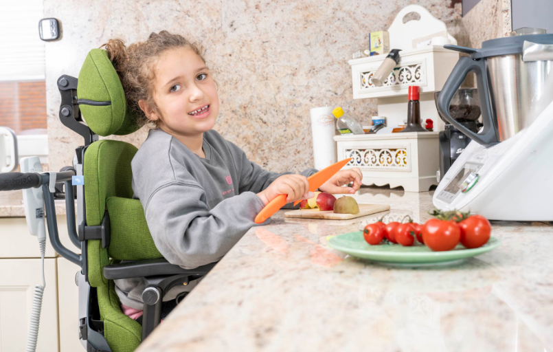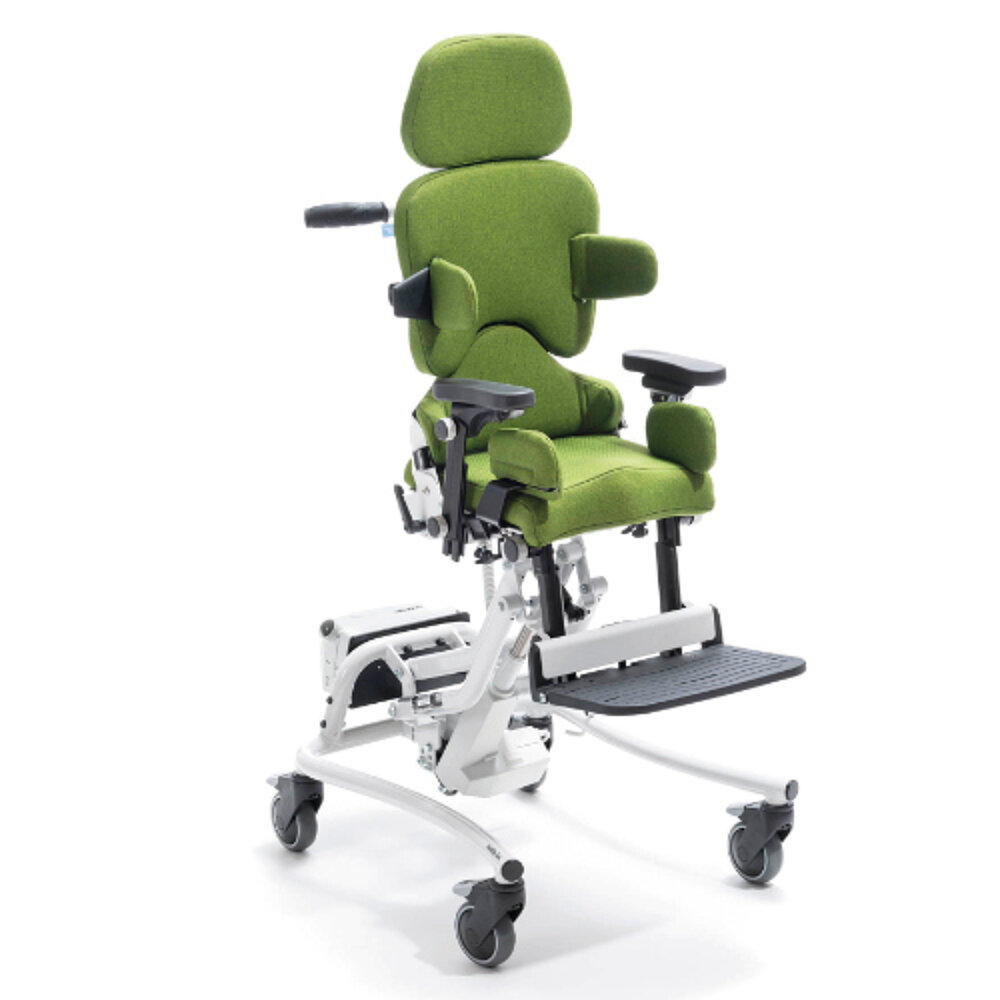 Unsre Tochter sitzt gerne in ihrem Therapiestuhl, die Kantelfunktion ist super und wird für Ruhephasen oder wenn der Kopf zu schwer wird, genutzt. Die Höhenverstellung ist super praktisch - gerade für die Kita oder beim Spielen mit der Schwester. Mit den Gummireifen kommt man gut über kleine Fliesenkanten, ohne den Stuhl anzuheben.