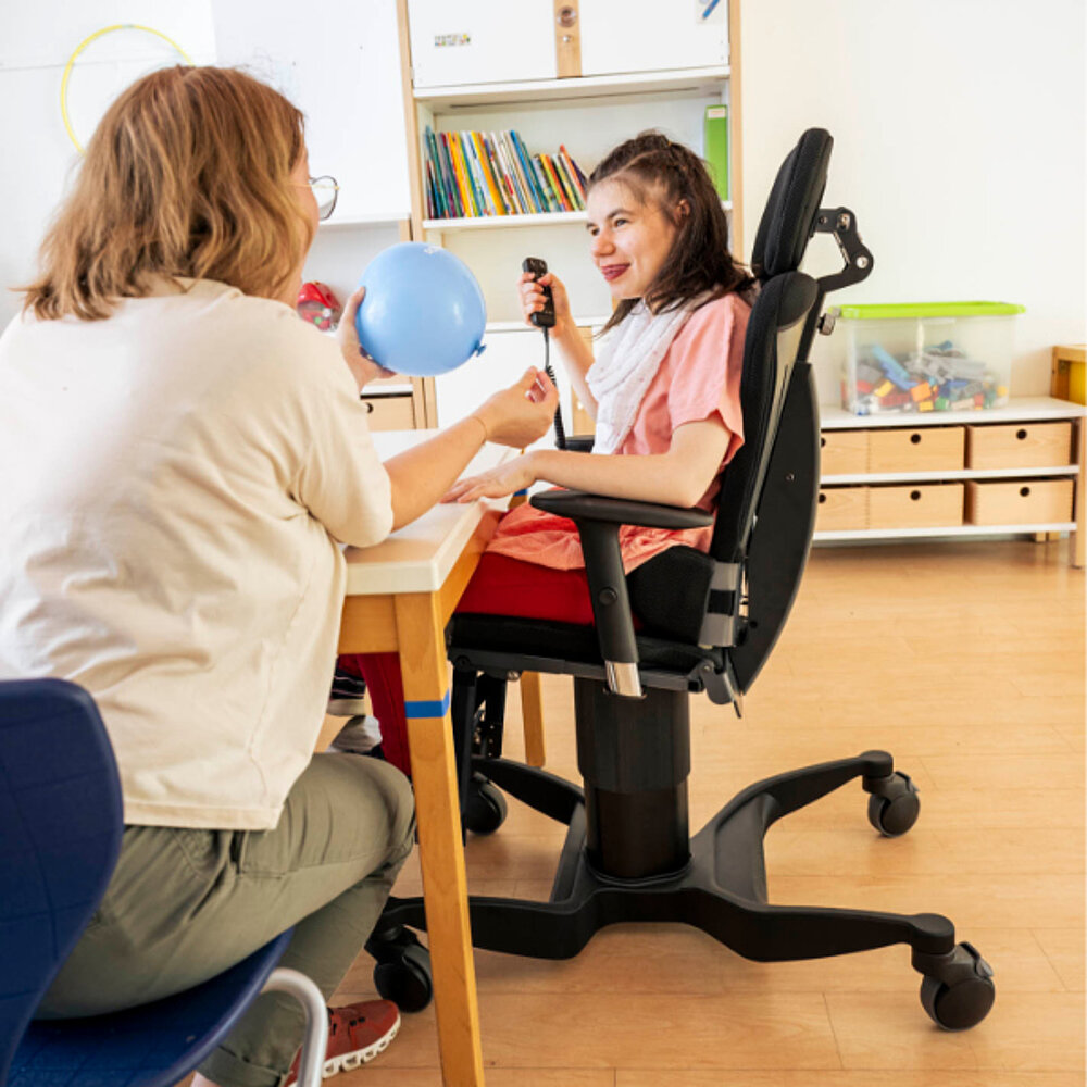 La maxi. es su silla terapéutica de confianza para una posición sentada óptima. Es un compañero fiable para las tareas escolares o las sesiones de lectura y garantiza que siempre estés sentado de forma cómoda y correcta. Su discreto diseño encaja perfectamente en la habitación de su hijo y apenas se diferencia de las sillas de trabajo de sus amigos. Gracias a su robusta columna central y a su mayor distancia entre ejes, también puede soportar cargas pesadas. Gracias a la forma anatómica del asiento y el respaldo, la pelvis queda apoyada, y las opciones de altura y ángulo ajustables permiten la personalización para lograr la máxima comodidad y una posición sentada estable y erguida.
