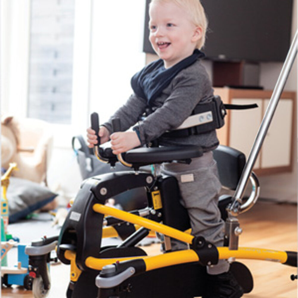 Wir haben den Mustang im Rahmen einer Reha ausprobiert und mein Sohn war sofort begeistert. Er hat einen tollen Halt und trotzdem gute Bewegungsfreiheit. Wir haben ihn nun auch Zuhause und er erleichtert uns den Alltag ungemein. Mein Sohn freut sich immer damit zu laufen und für uns ist das Handling sehr einfach!