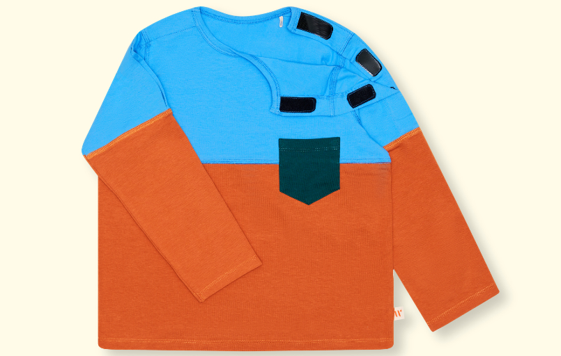 El manguito largo especialmente diseñado es ideal para estancias hospitalarias o cuidados médicos en casa. Gracias al cierre de velcro, las mangas pueden abrirse parcialmente sin arañar ni pellizcar. Esto mantiene al niño abrigado mientras el hombro y la parte superior del brazo están accesibles. La camiseta de manga larga también facilita la colocación y retirada si su hijo tiene debilidad muscular o contracturas. Es práctica para niños con sonda de alimentación o catéter, fracturas en la zona del brazo y el hombro, ortesis o prótesis en el brazo, niños con prótesis en la cabeza, hospitalización, después de operaciones y en caso de debilidad muscular o contracturas.