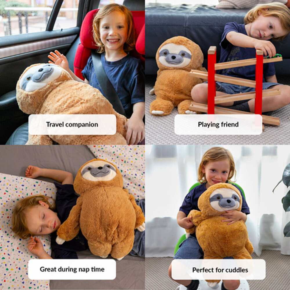Este peluche de terapia sensorial con peso ofrece a los niños apoyo emocional y una sensación de seguridad en todo momento. La presión que ejercen los peluches con peso sobre el sistema nervioso permite a los niños concentrarse y enfocar mejor las situaciones difíciles. El peluche con peso proporciona una presión profunda y un estímulo sensorial, también conocido como presión de tacto profundo (DTP, por sus siglas en inglés). Se ha demostrado que los peluches con peso tienen un efecto calmante en niños y adultos. Nuestro peluche Sloth Anxiety es una solución maravillosa para la relajación y como peluche terapéutico lastrado.