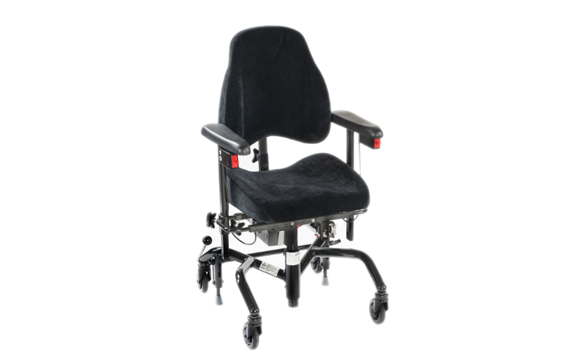 La silla de movilidad REAL 9000 PLUS permite la sedestación activa y el movimiento hacia delante por tropiezos. Ventaja especial: movimiento lateral. En combinación con la ayuda de bipedestación REAL 9000 PLUS EL facilita el levantarse y sentarse de forma segura. Gracias al freno y al ajuste eléctrico de la altura y el ángulo del asiento, la silla puede elevarse con seguridad o ajustarse a la altura correcta para una silla salvaescaleras, una cama o un inodoro. El ajuste eléctrico de la altura del asiento también permite alcanzar objetos altos, establecer contacto visual a la altura de los ojos o realizar tareas sencillas en la cocina.