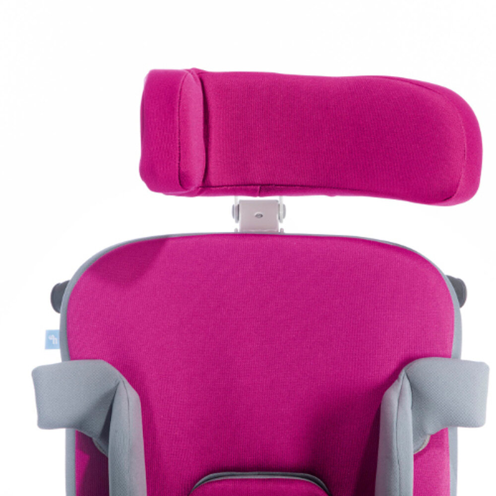El nuevo reposacabezas con guía lateral ajustable en ángulo ofrece flexibilidad y adaptabilidad para sillas de terapia como madita., madita fun., madita hd. y sofie. Es una solución especialmente útil para requisitos complejos debidos a enfermedades subyacentes como parálisis cerebral y distrofias musculares. El ajuste continuo permite una corrección suave del centro, alivia la tensión muscular y descarga la columna cervical. Esto mejora la concentración en actividades como escuchar y comer, al tiempo que evita la disminución de la audición y del campo de visión.