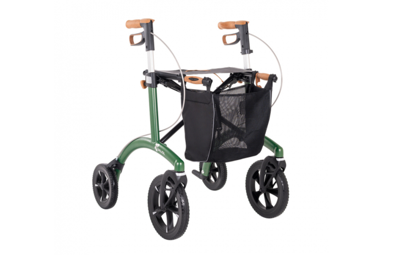 Un verdadero todoterreno para la ciudad y el campo: este rollator pesa sólo 6,4 kg y es, por tanto, más ligero que la mayoría de los modelos de aluminio y carbono. Esto hace que sea fácil de maniobrar e incluso de subir y bajar escaleras. El diseño único del chasis y los elegantes colores lo convierten en un atractivo con estilo. La bolsa de malla extraíble, que puede transportar hasta 5 kg, redondea su elegante aspecto.