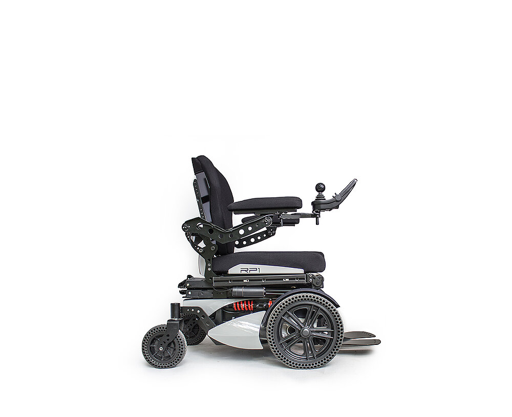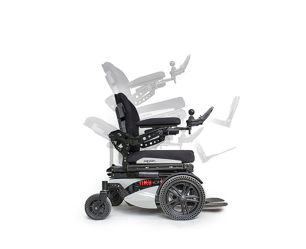 La silla de ruedas eléctrica RP1 está equipada con un elevador de asiento eléctrico. Las funciones eléctricas adicionales están disponibles con un cargo adicional.