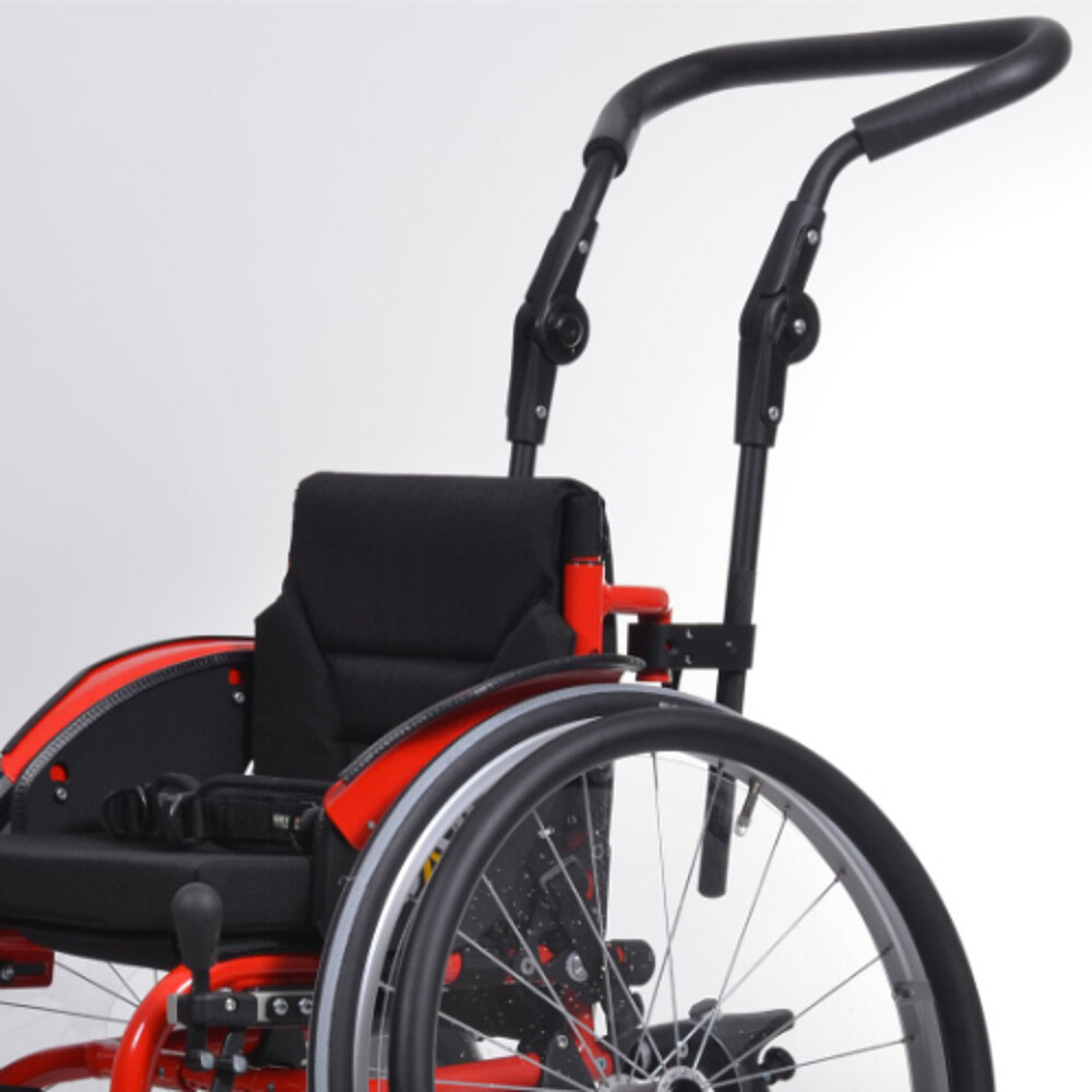 La SAGITTA Kids es una silla de ruedas activa para niños que se corresponde con el modelo Sagitta para adultos. Dispone de un asiento regulable en altura, un protector de ropa, empuñaduras regulables en altura y una práctica red para la compra. Las ruedas traseras están equipadas con mecanismos de liberación rápida. Con un peso total de sólo 9 kg y una anchura de asiento de 24-34 cm, ofrece una solución de movilidad ligera y flexible para los niños.