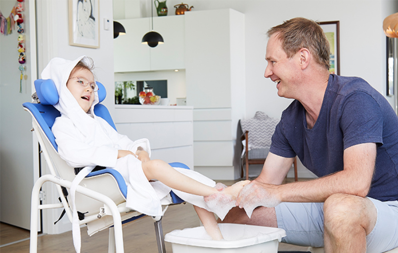 Swan Curo es una silla cómoda de ducha compacta, ligera y fácil de usar que facilita la vida diaria tanto al usuario como al cuidador. Con su diseño minimalista y su funcionalidad versátil, encaja en casi cualquier cuarto de baño o salón. El asiento de cubo ofrece un apoyo anatómicamente correcto y es fácil de limpiar. El uso de esta silla fomenta la autodeterminación, la dignidad y mejora la calidad de vida del niño mediante la participación activa en las actividades cotidianas y el aprendizaje de la higiene personal básica.