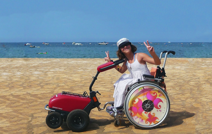 El Swiss-Trac ofrece a los adultos y niños en silla de ruedas un aumento considerable de su movilidad e independencia en la vida cotidiana. Puede conectar el accionamiento eléctrico a su silla de ruedas en tan solo unos segundos y su radio de acción se ampliará al instante: podrá recorrer hasta 30 kilómetros de forma independiente y salvar salientes y otros obstáculos con seguridad y facilidad. Incluso puede superar pendientes y terrenos irregulares sin esfuerzo, incluso si tiene una función de agarre o fuerza en los brazos limitada.