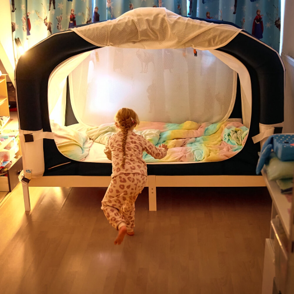El CloudCuddle Maxx es fácil de llevar a todas partes. Con las prácticas instrucciones, el CloudCuddle Maxx puede instalarse en casi cualquier cama individual en cinco minutos.