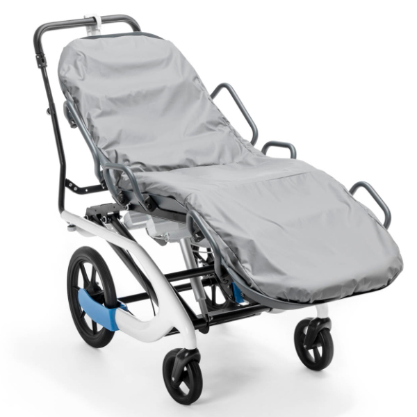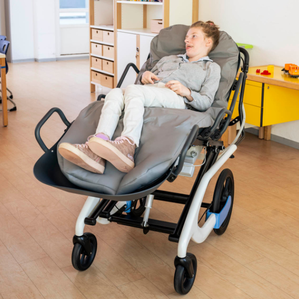 tina. es un sistema modular de carcasa reclinable que ofrece el máximo confort. Gracias a un colchón de vacío con bomba eléctrica, garantiza una posición tumbada sin presión ni dolor. La altura de la superficie de reposo puede ajustarse eléctricamente, al igual que los ángulos del asiento, el respaldo y las rodillas, de modo que también puede adoptarse una postura cómoda cuando se está sentado. Las ruedas giratorias flexibles facilitan el giro y el empuje, lo que hace que tina. sea especialmente móvil, ideal para pasear y viajar. Con un asiento regulable en profundidad, barra de empuje ajustable y robustas ruedas traseras de PU de 16", tina. ofrece un alto nivel de confort y un fácil manejo tanto en interiores como en exteriores.