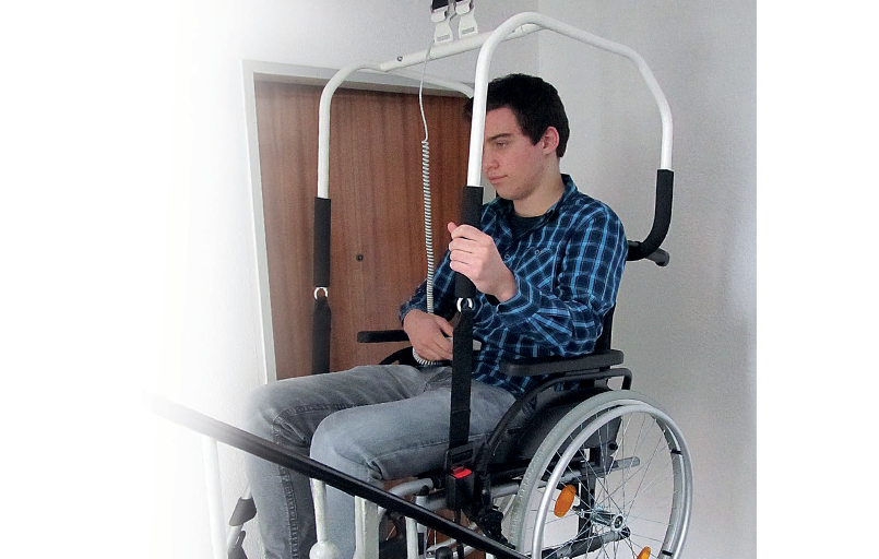 El Heymer Trio es un sistema de elevación de techo en huecos de escalera que permite a los usuarios de sillas de ruedas subir y bajar las escaleras de forma independiente.