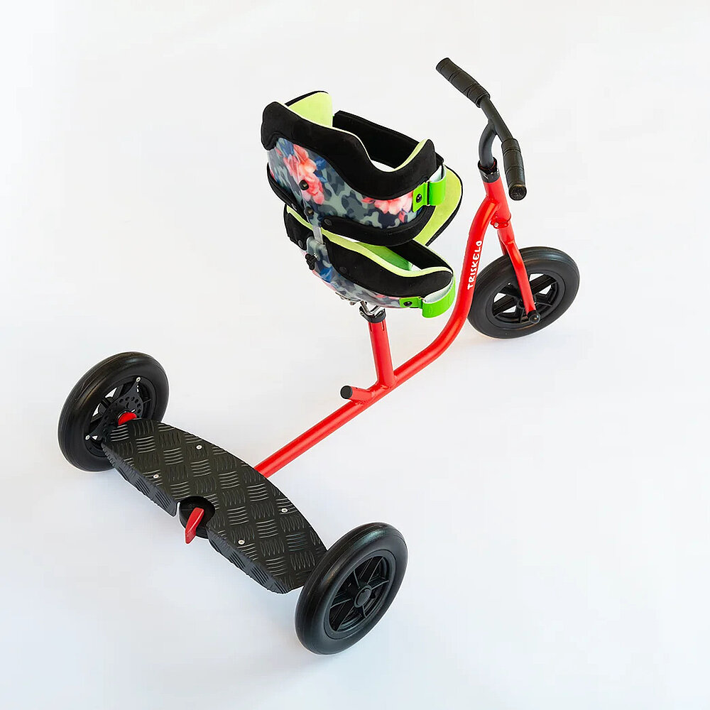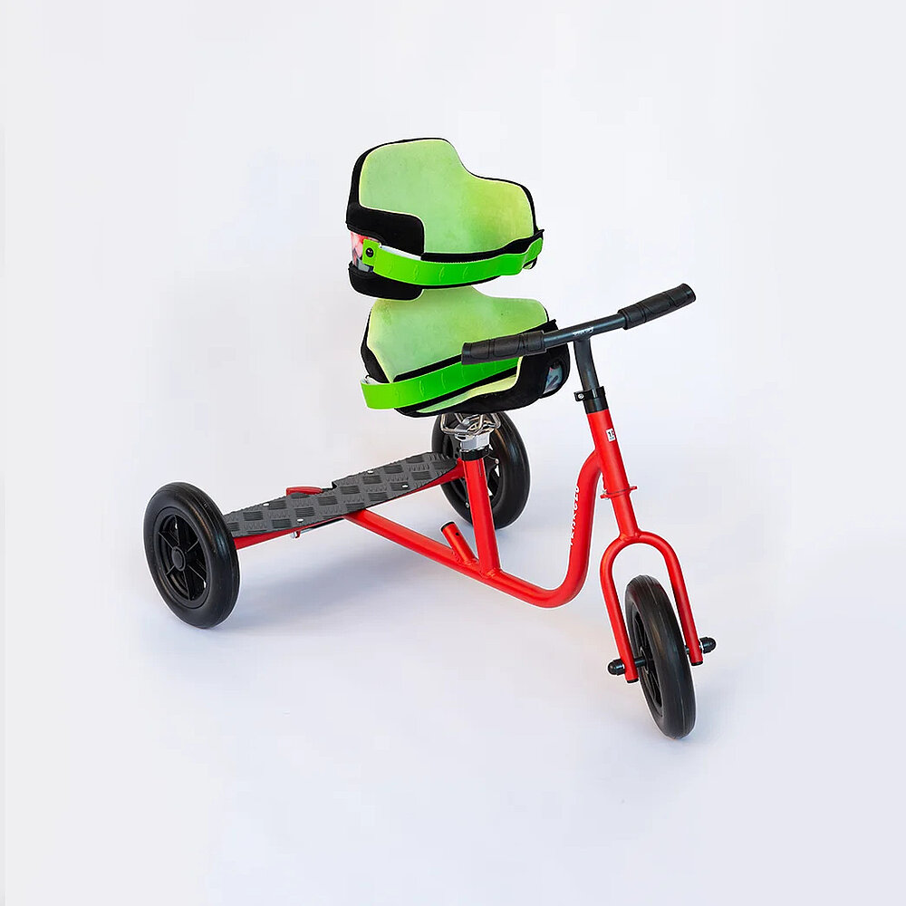 El Triskelo es un andador de movilidad triciclo con un corsé de sillín personalizado. El corsé anatómico del sillín permite al niño caminar de forma independiente, lo que hace que el Triskelo sea ideal como ayuda terapéutica y como compañero de paseos familiares.