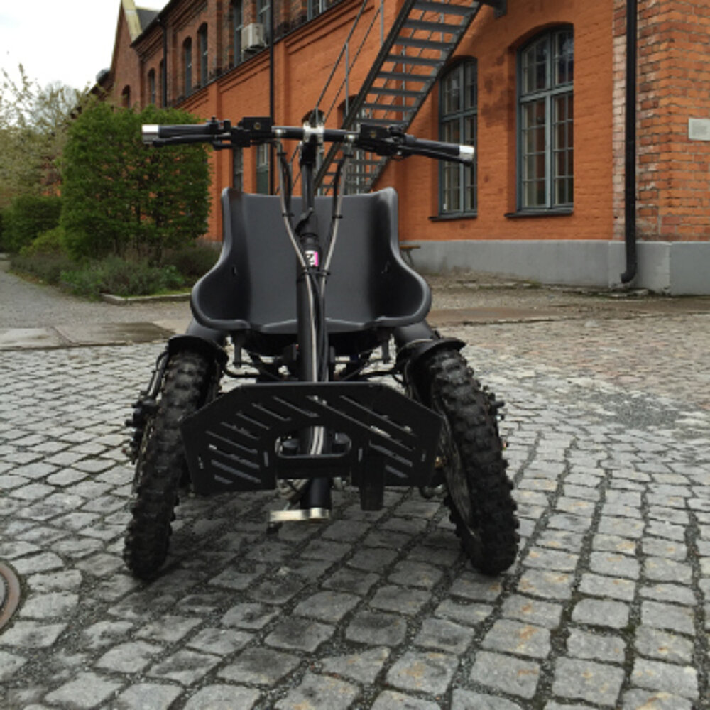 Los reposapiernas y el manillar ajustables permiten adaptarlos a cualquier estatura. Con sus robustos neumáticos de banda de rodadura, su tracción eléctrica a las cuatro ruedas y su chasis de acero flexible, se enfrenta sin esfuerzo a la arena, los terrenos irregulares, los prados y los caminos forestales. Su buena tracción y su capacidad para superar pendientes lo hacen ideal para aventuras todoterreno. Con una velocidad máxima de hasta 15 km/h y una autonomía de 30 km, puede utilizarse incluso para excursiones como una visita guiada por el lago Dümmer.